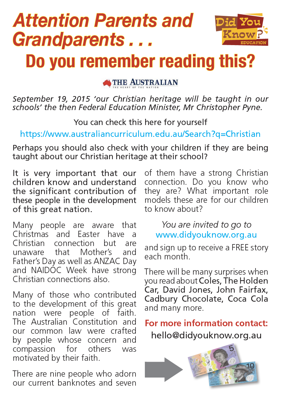 Attention Parents and Grandparents... Published: 4/12/2022 By matthewcannell Christian Heritage in Schools Promo-A4 size.pdf