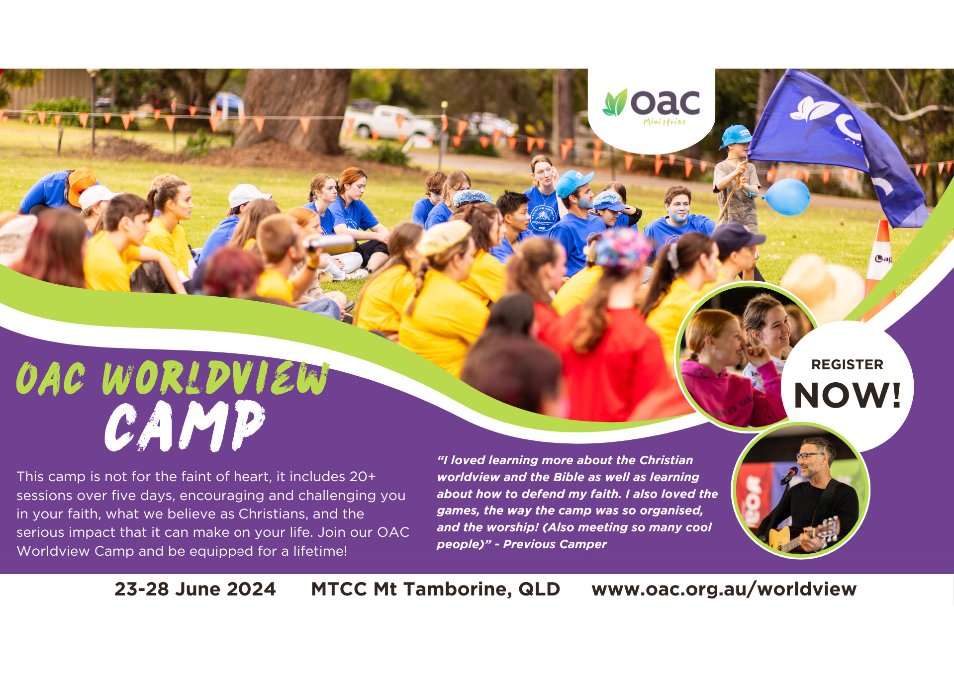 For details, go to: https://oac.org.au/event/worldview-youth-camp-queensland-2024/